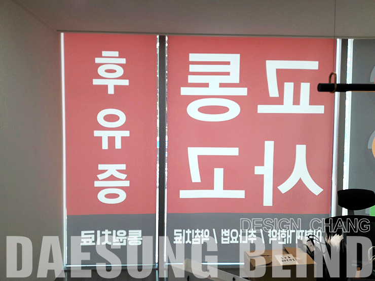 롤스크린 출력형 로고 블라인드 활용편 원하는 모양 그림으로 만들어 지는 종류 롤스크린 실사 출력형 블라인드 입니다. 안녕하세요 대구블라인드 전문점 대성블라인드 디자인창입니다. 오늘