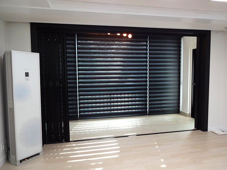 34평 거실 공간 창호 맞춤 블라인드 설치