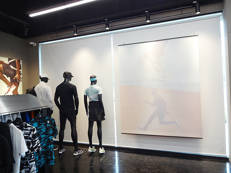 매장 큰 창문에 다용도 블라인드