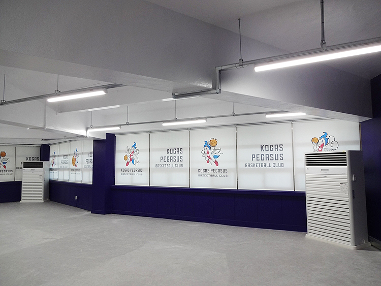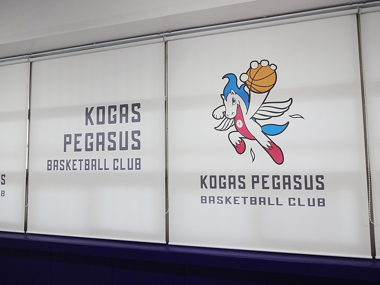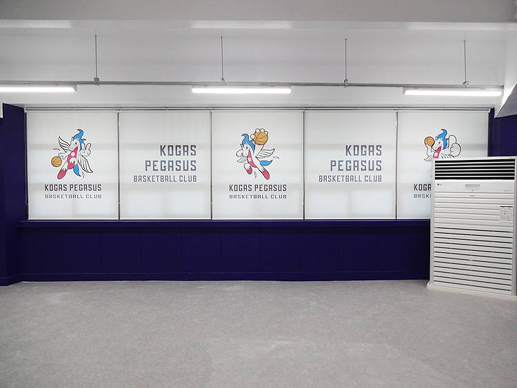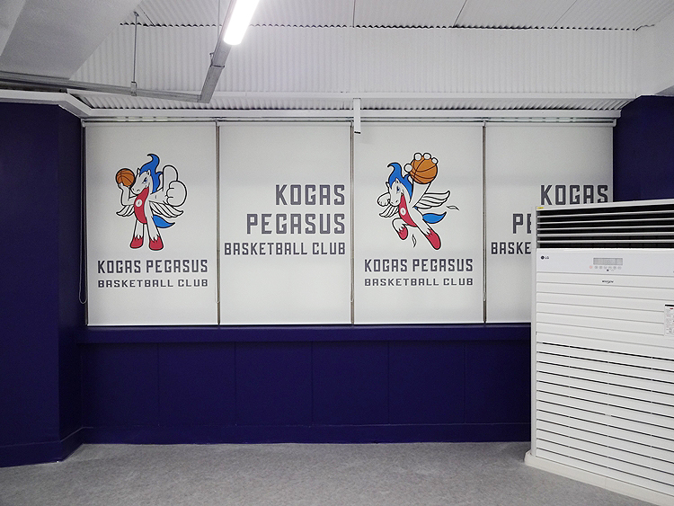 대구실내체육관 내부에 설치한 로고 실사롤스크린 설치후기입니다.