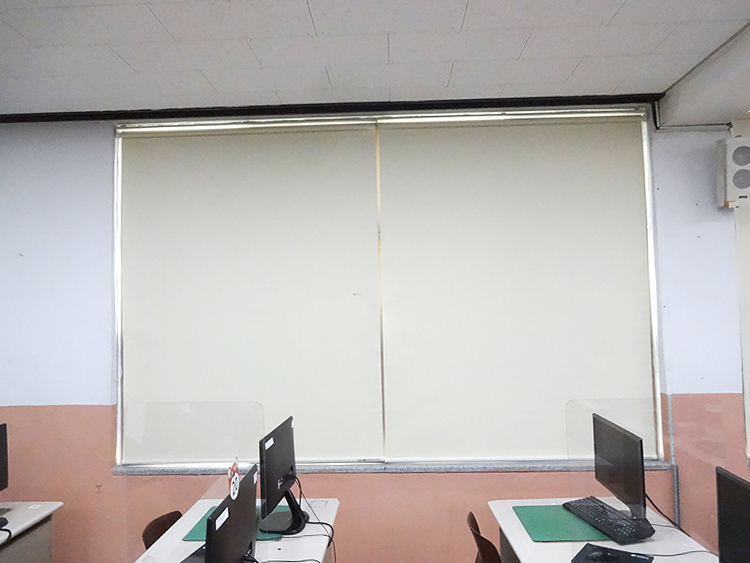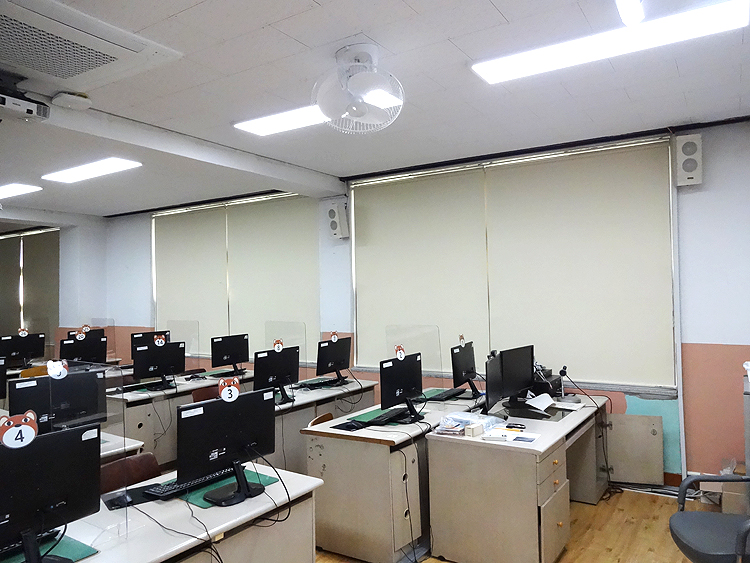 오늘은 학교 컴퓨터실 공간에 설치한 방염블라인드 암막 롤스크린 설치후기입니다.