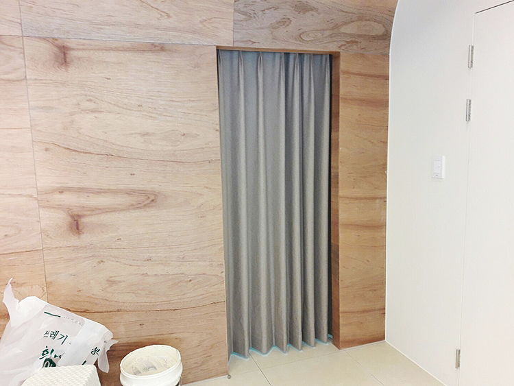 그리고 출입이 용이하도록 제작한 커튼인데요.