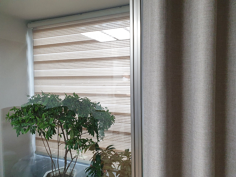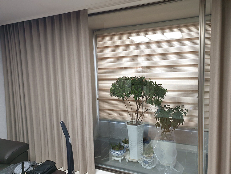 베란다 연브라운 주름 블라인드 색감