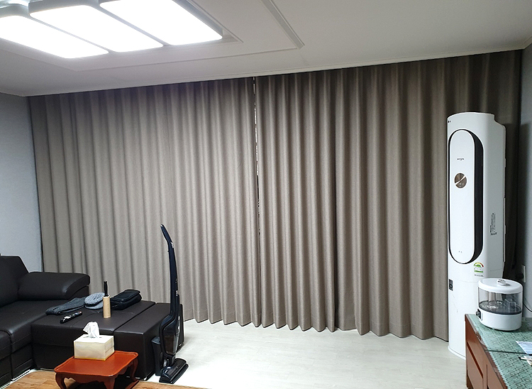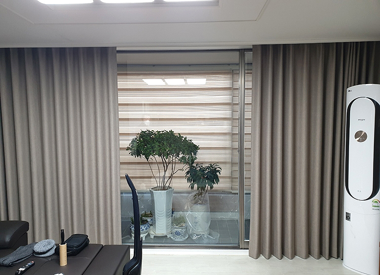 거실에 설치한 암막커튼 모양이 예쁘죠!