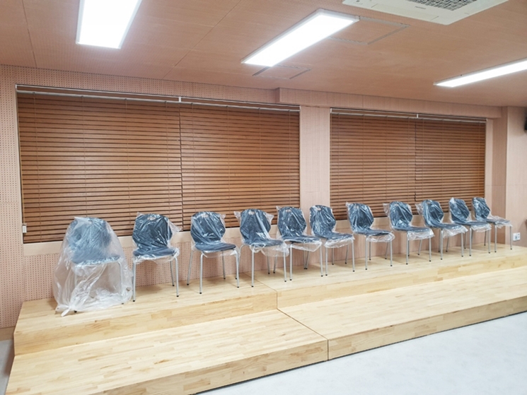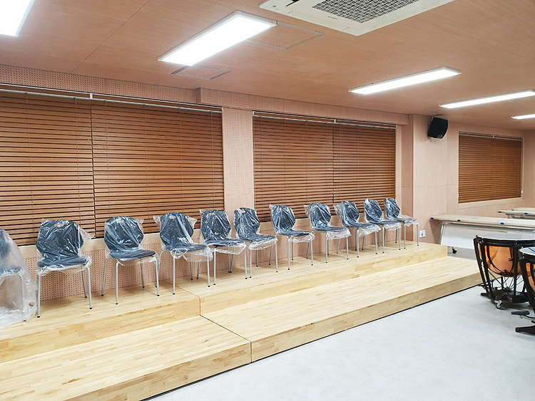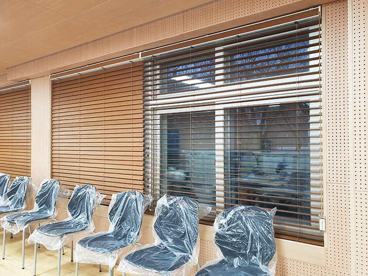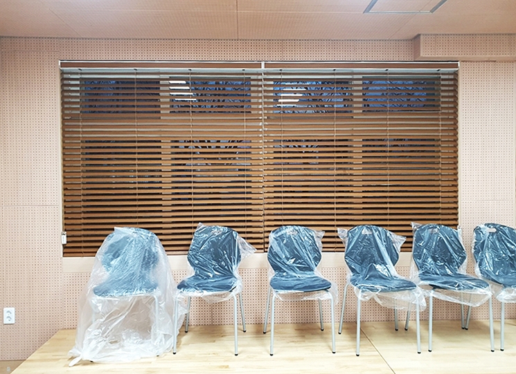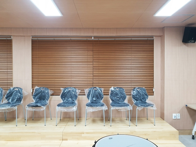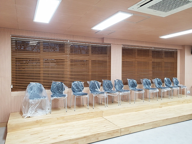 학교에 설치한 방염우드블라인드
