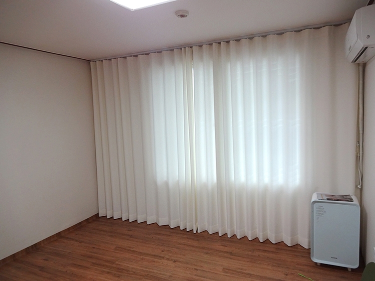 블라인드 보다 커튼을 선호하시는 분들은 공간을 채워주는 아늑함, 포근한 분위기를 좋아하시기 때문에 선택하는 경우가 많은데요 이러한 효과를 만들어 주면서 관리가 수월하게 사용하는 방법은 한장(홉겹)형 커튼으로 상황에 맞추어서 펼치거나 걷어서 사용하는 편의성을 우선으로 사용하는 맞춤방식이 좋답니다.
