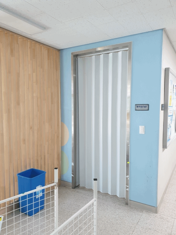 화이트 방염 홀딩 자바라 설치인데요.