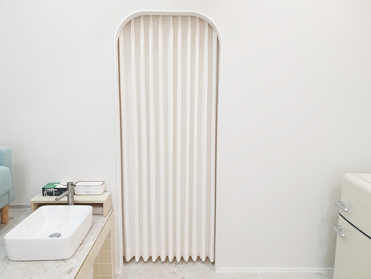 오늘은 레일샵 매장에 설치한 커튼설치 입니다.