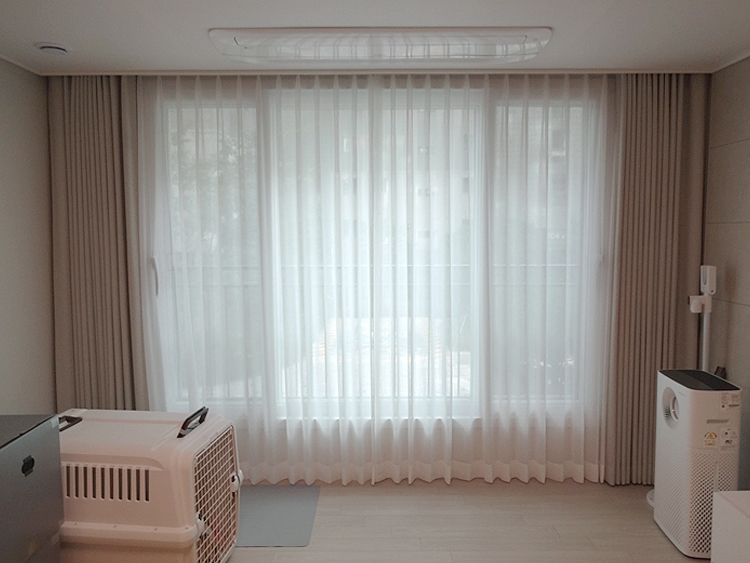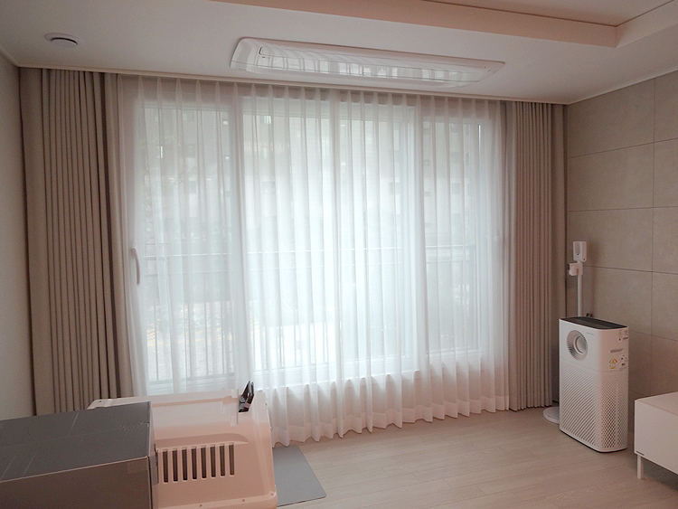 거실 공간에 데일리 2중 커튼으로 예쁘게 꾸며주었는데요.