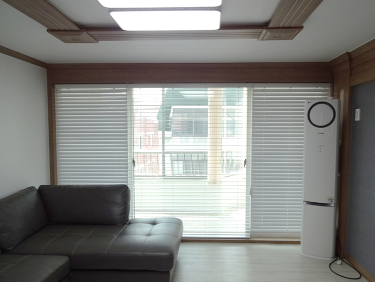 거실우드블라인드 설치 오동나무