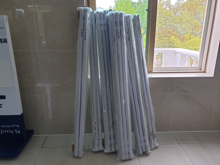 롤스크린 블라인드 방염 원단 설치 장면