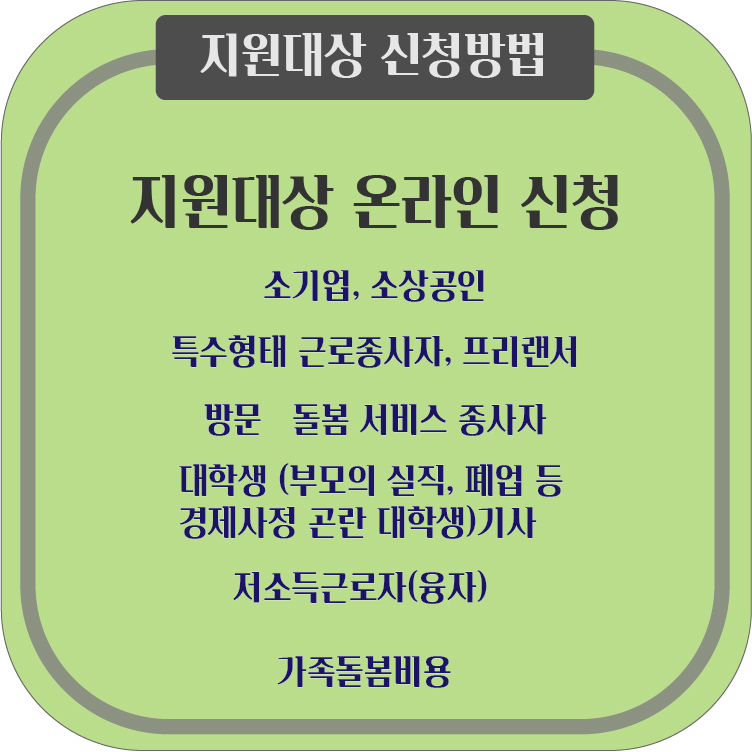 소기업 소상공인에서 저소득근로자, 가족돌봄종사자, 대학생 까지