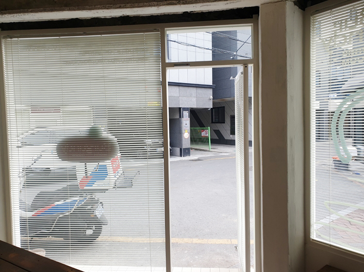 매장 윈도우 공간에 설치한 알루미늄블라인드