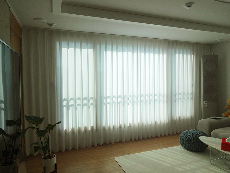 거실 중심을 잡아주는 차르르 속지 커튼 디자인