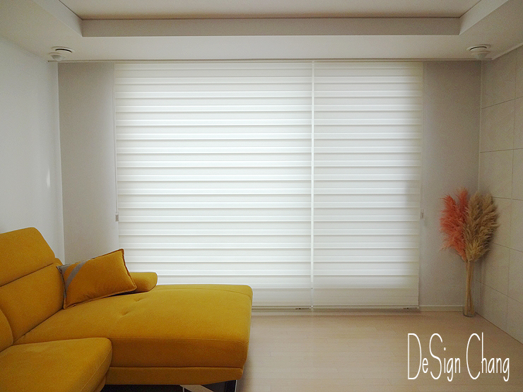 깔끔함을 장점으로 예쁜 거실블라인드를 설치하였답니다.