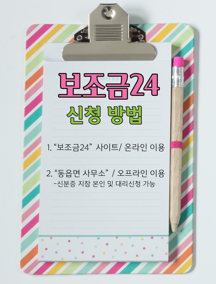 읍면동 사무실로 방문해서 (신분증 지참) 보조금24 신청할 수 있습니다.