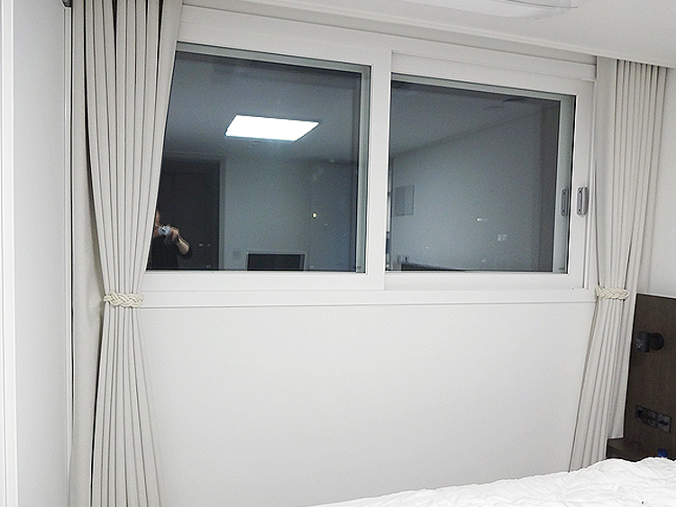반창문 구조로써 블라인드 사용을 추천
