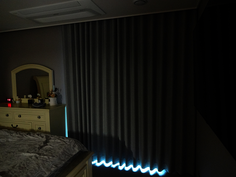 공간이 비좁해서 커튼을 젖혀진 상태로