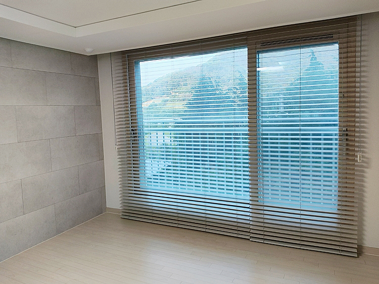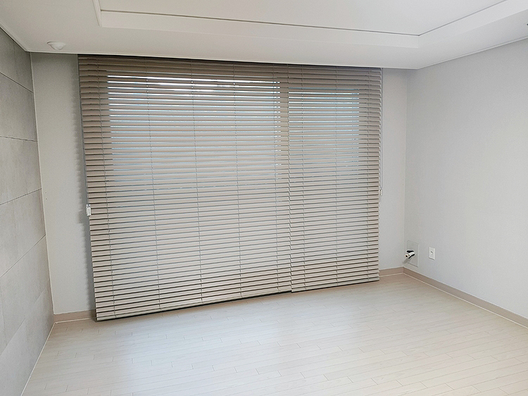 비대칭 거실 우드블라인드 창문설치