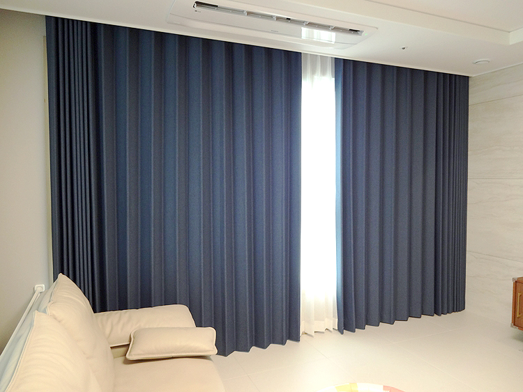 네이비 데일리 암막커튼 원단