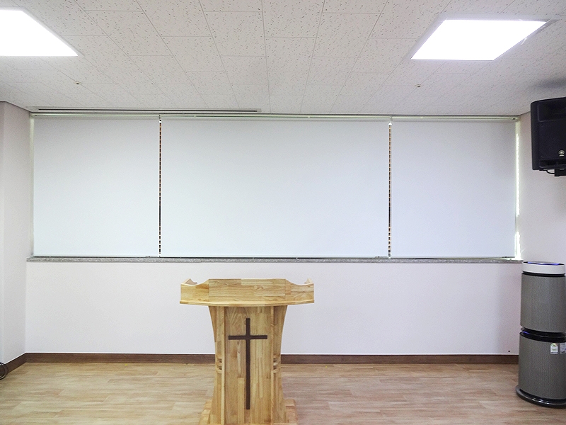 화이트 색상을 기반으로 프로젝터 영상스크린