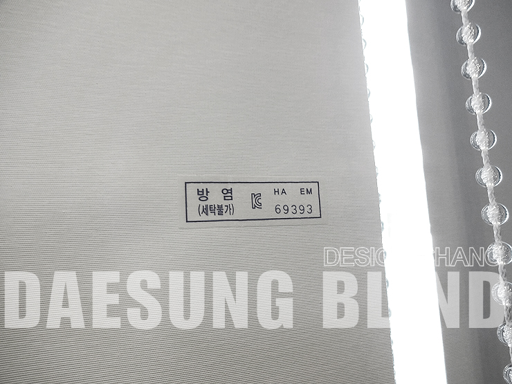 그렇기에 방염이라는 특수처리 방식으로 암막블라인드 원단을 제작하는데요 화재시 안정성을 보장해주는 안전장치 라고 생각하시면됩니다 이런 방염처리된 블라인드 원단은 사진처럼 방염필증 부착으로 확인이 가능합니다.