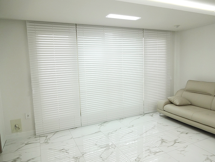 공간애 맞추어진 블라인드 커튼을 코디 제작