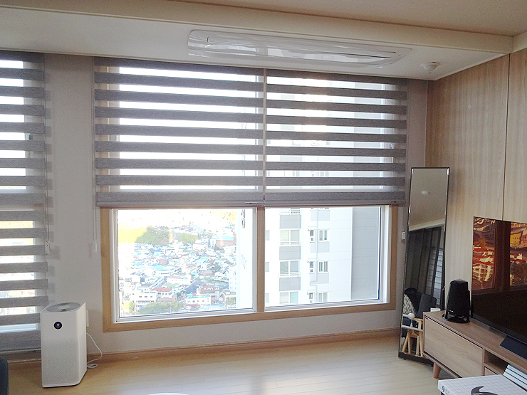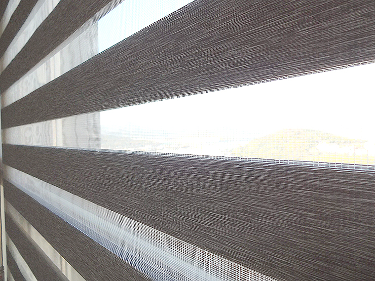 콤비블라인드를 사용하는 대표적인 이유는 바로 내려진 상태에서도 답답함이 없다는 특징이죠 사진처럼 블라인드 내려진 상태에서 원단 간격을 조절함으로써 편리하게 사용할수있답니다.