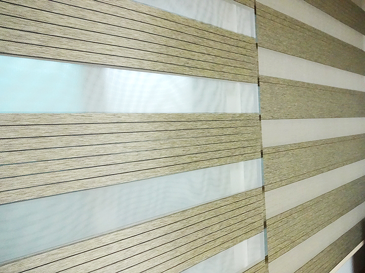 망사 스트라이프 디자인이 매력 포인트인 콤비블라인드 종류가 있습니다 바로 션샤인 블라인드 블라인드 가림 원단에 얇은 줄 라인 디자인으로 스트라이프 모양이 포인트가 되는 디자인형 콤비블라인드 입니다.