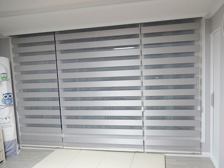 평형 혹은 창호 맞춤으로 제작되는 블라인드 방식에서 34평 거실 공간 블라인드 제작은 사진처럼 3등분으로 설치한답니다 이유에는 창문의 환기 여닫음을 편리하게 해주면서 자외선이 들오는 방향에 맞추어진 블라인드 조절 방식으로 사용하기 편리하기 때문이죠 또 한 너무 큰 사이즈 블라인드 경우 잔고장 및 줄 끊어짐 현상이 생기는데요 이런 잔고장을 방지하는 효과 또한 블라인드 제작 방식에서 볼 수 있답니다.