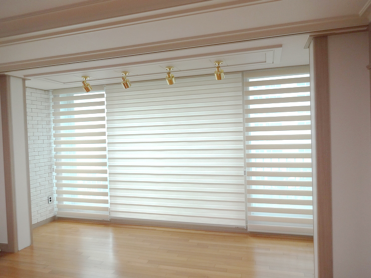 아파트 거실에는 생활공간으로 밝고 아늑한 분위기를 대부분 선호하는데요 그런 이유에서 알반형 원단 즉 콤비블라인드화이트 색상을 가장 많이 사용한답니다. 화이트 색상은 주변 인테리어 공간과 자연스럽게 매치되는 효과는 물론 채광을 막아주고 실내 빛침을 차단해주는 효율성에도 아주 뚸어난 효과를 보인답니다.