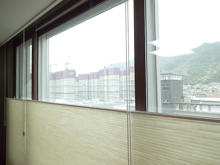 블라인드 종류는 "위에서 아래로 내려온다?" 여기에 색 다른 조절방식으로 인기있는 허니콤 블라인드를 소개합니다. 일반적인 블라인드 방식은 기본 윗 부분 블라인드 조절방식으로 여닫음 조절 기능성이 탁월한 허니콤 블라인드 입니다.