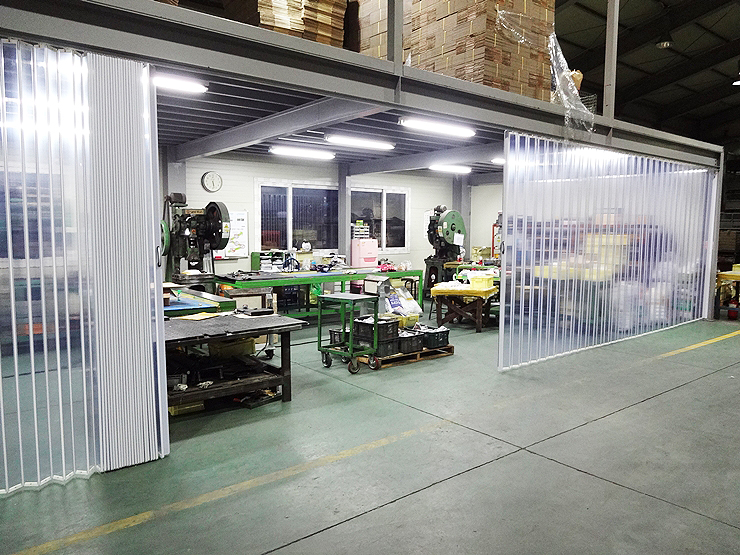 공간을 나누어 주는 유익한 블라인드 종류가 있습니다 바로 홀딩도어 자바라인데요 투명색상으로 답답함을 줄여주는 특별한 홀딩도어 종류를 소개합니다 공간 검품실 공간에 파티션 역활로 설치를 하였는데요.