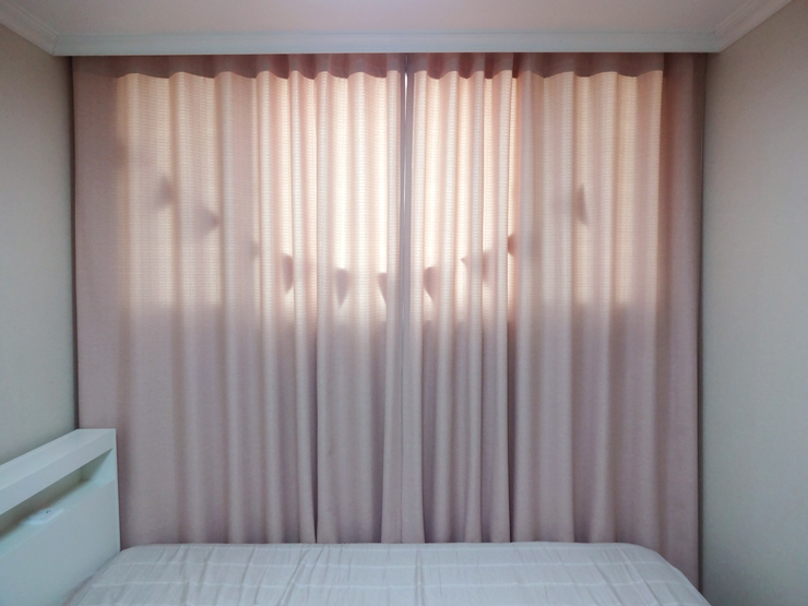 가볍게 한장으로 사용하는 커튼 방식으로 상황에 맞춰서 커튼을 빠르게 여닫음으로 사용하는 실용방식인데요 인디 핑크 색상으로 공간의 포인트가 되면서 실용성을 높여주는 홉겹 커튼을 설치하였답니다.