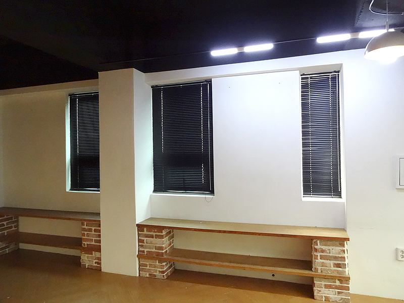 카페 창문 매립형 알루미늄 블라인드 설치장면