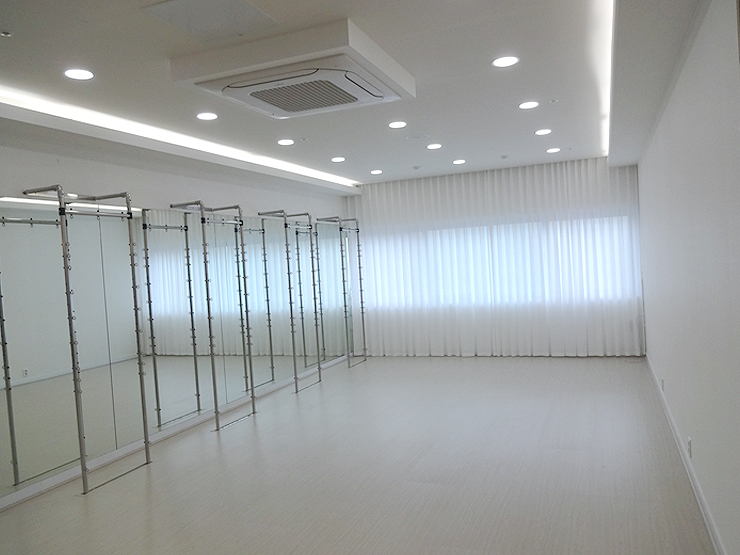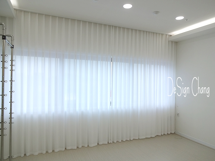 필라테스 강의실에 설치한 쉬폰커튼 역시