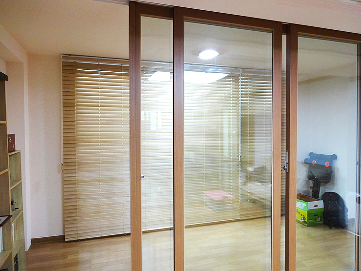 편백나무 우드블라인드 향기로운 피톤치드 가득한 공간 만들기 우드블라인드 원목 종류에 따라서 특징이 다릅니다. 편백나무 소재로 만들어진 고급형 우드블라인드를 대표실 공간에 설치하였
